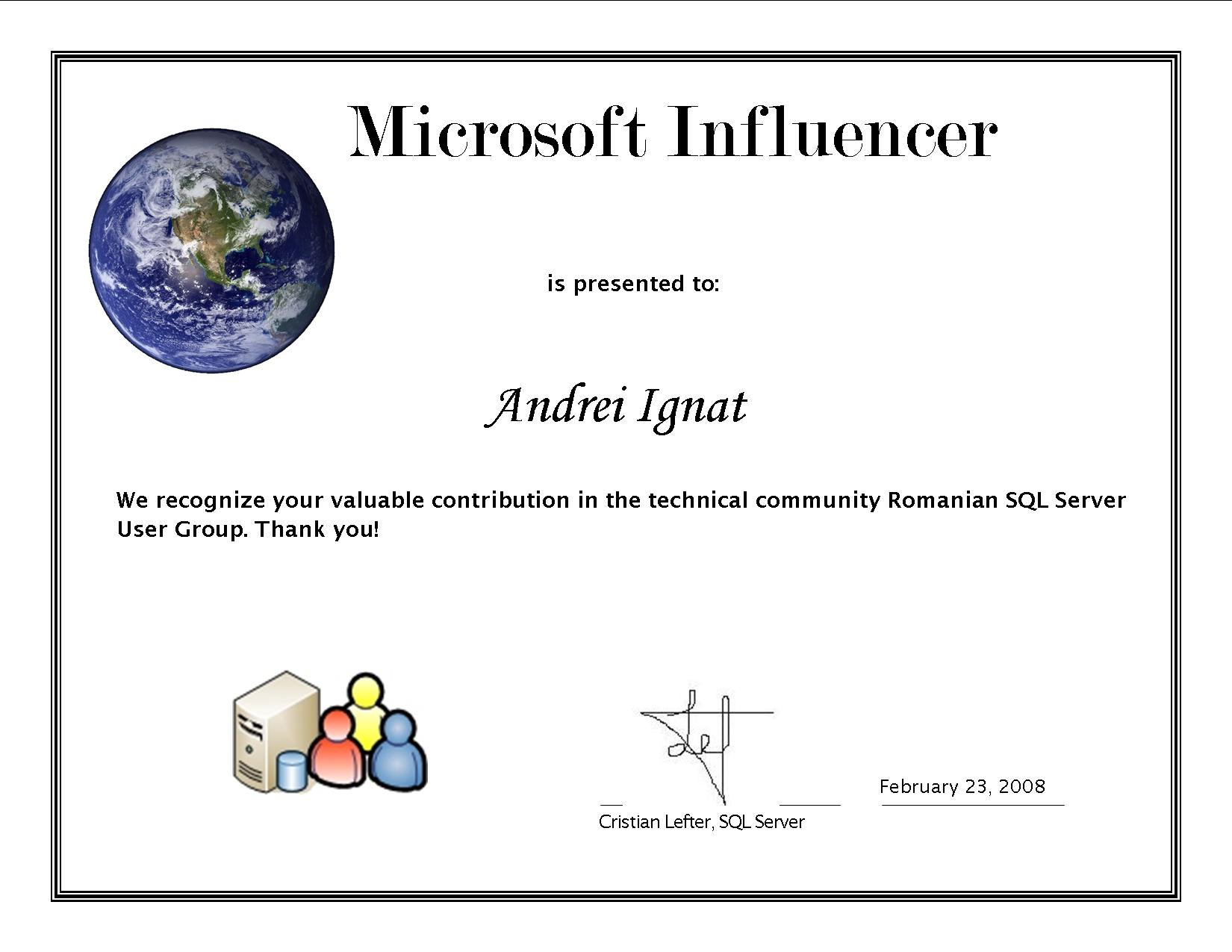 Post page: http://serviciipeweb.ro/iafblog/2008/02/25/Microsoft+Influencers.aspx